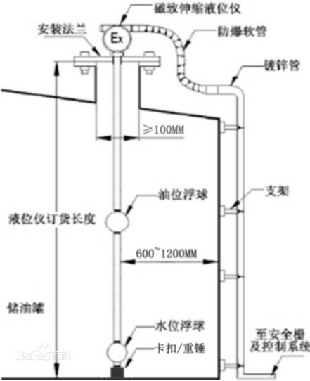 安裝方法三:測(cè)量大型立油罐的液位時(shí)采用軟纜式頂部安裝